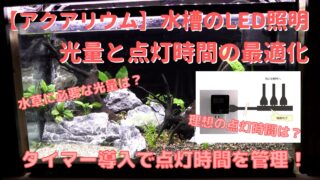飼育設備【アクアリウム】LED照明の光量と点灯時間の最適化-水槽コケ対策 緑コケが酷かった我が家のタナゴ水槽のLED照明の点灯環境を改善すべく、水草水槽に必要な光量(全光束)やLED照明の最適な点灯時間などを整理し、LED照明の追加とタイマーの設置を行って環境の最適化を行いました。 2024.03.15飼育設備