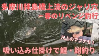 釣行記【釣り】吸い込み仕掛けで秋の鯉釣り2-多摩川拝島橋上流のジャリ穴 多摩川拝島橋上流のジャリ穴で吸い込み仕掛けによる鯉釣りをしてきました。前回、今年の初鯉はGETするもサイズが小さめでしたので、今回は50cmオーバーの鯉を目指して同じポイントにリベンジ釣行です!果たして、50cmオーバーの大鯉は釣れたのか? 2022.11.08釣行記
