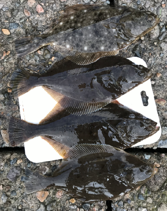 ちなみに写真は能登で釣りあげた35cmクラスのマコガレイ4尾です。短時間に入れ食いになり、非常に楽しめました。