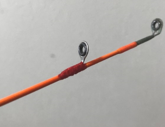 本来であれば、専用の接着剤でガイドをロッドに固定してから糸で巻いていくようですが、私は特に固定せずいきなり糸で巻いて固定しています。(それで外れたことはないです。)